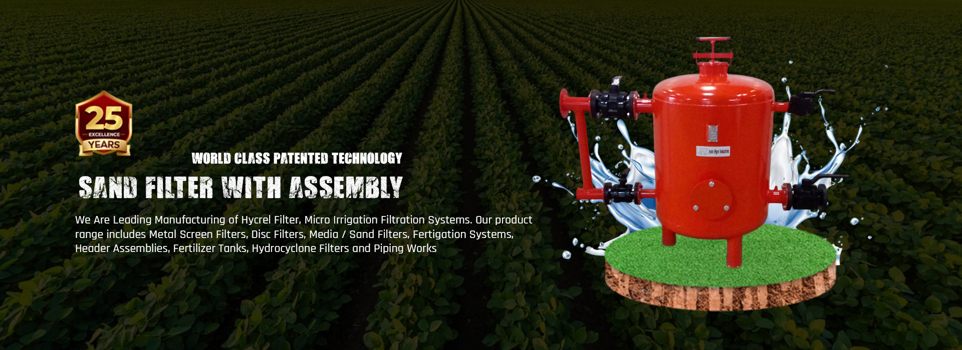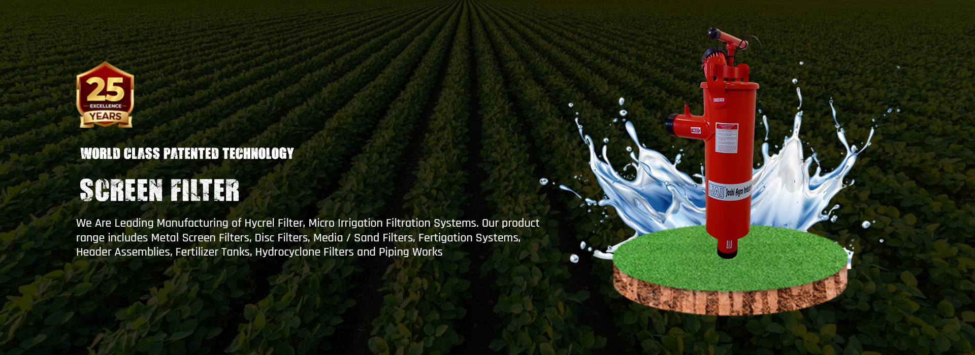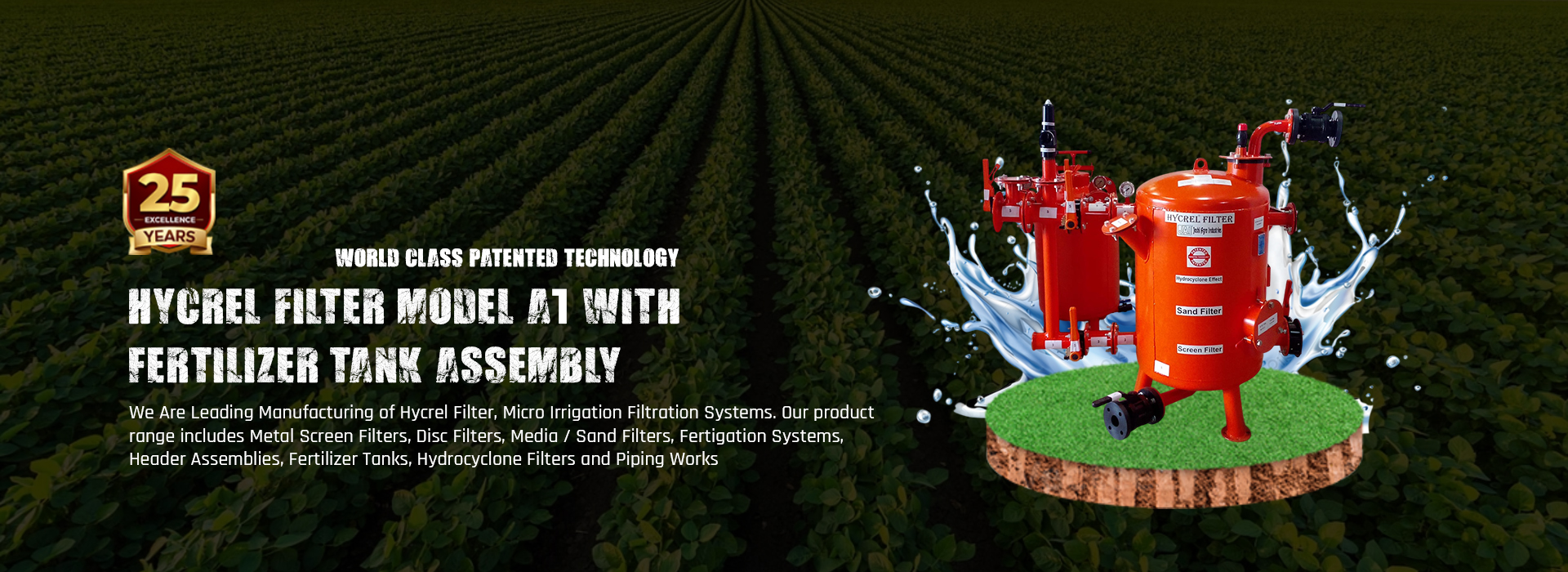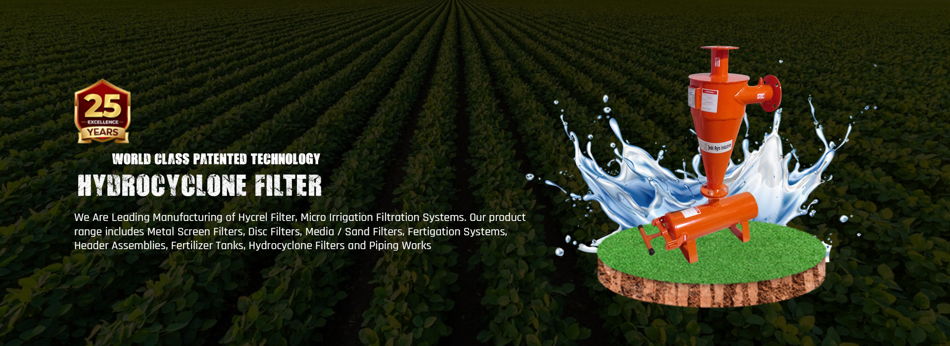 Joshi Agro Industries is the leading company engaged in manufacturing of Hycrel Filter, Micro Irrigation Filtration Systems. Our product range includes Metal Screen Filters, Disc Filters, Media / Sand Filters, Fertigation Systems, Header Assemblies, Fertilizer Tanks, Hydrocyclone Filters and Piping Works.