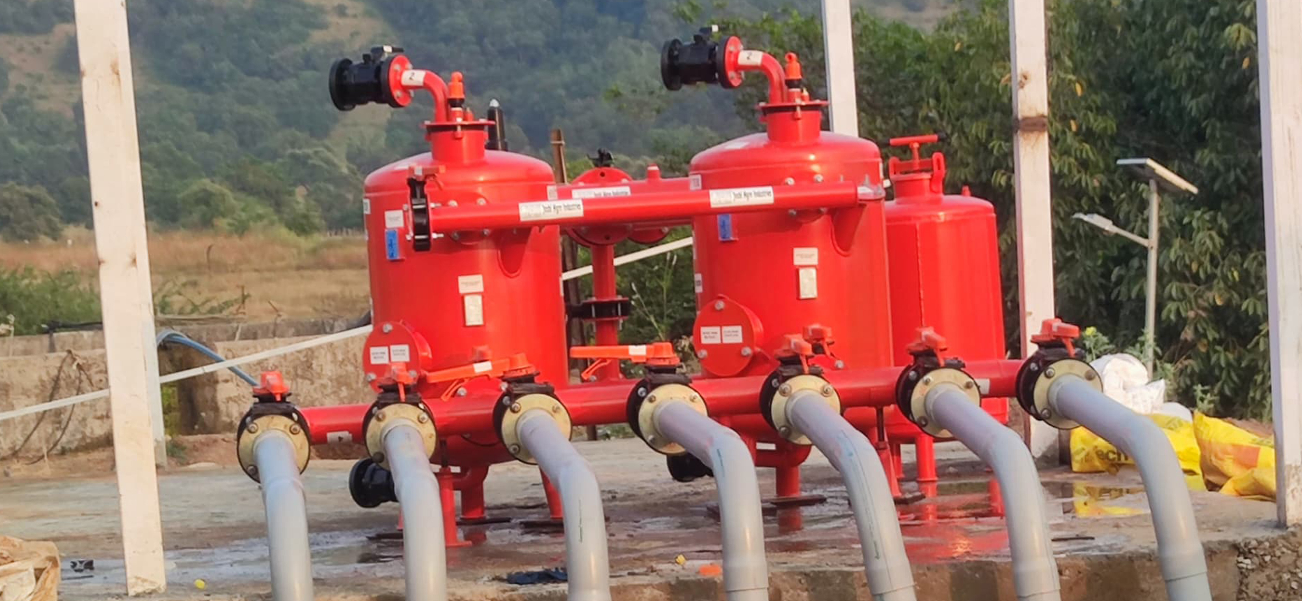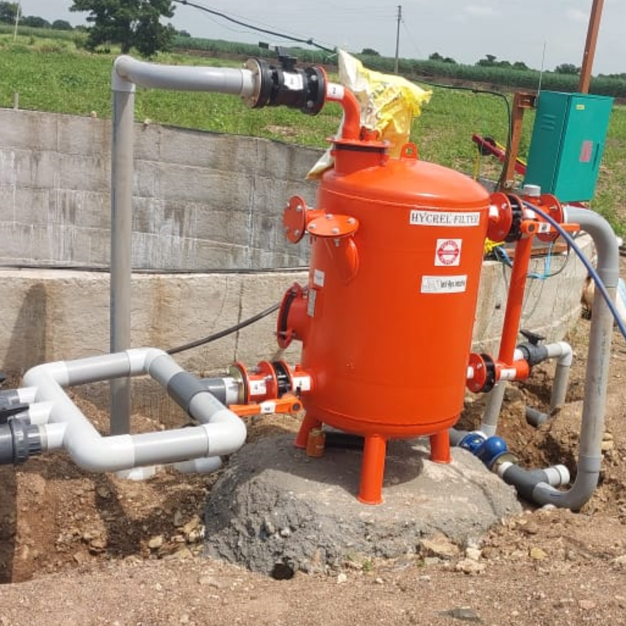 200M3/HR Hycrel Filter. Patented technology. Self cleaning. Installed since june 2020. for Sugar Cane in Near Solapur, Maharastra, India.